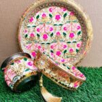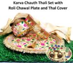 Package Contents: 1 Karwa Chauth Thali, 1 Kalash, 1 Channi, 1 Thali Cover, 1 Small Roli Chawal Plate.