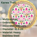 Premium Quality Multi Embroidery Thread Decorated with Gota, and Golden Tassel Stainless Steel handicraft Indian Traditional Fancy Thali Set for Karwachauth, Navratri, Diwali ,Chath Puja, Bhai Dooj and other Indian Festivals.
