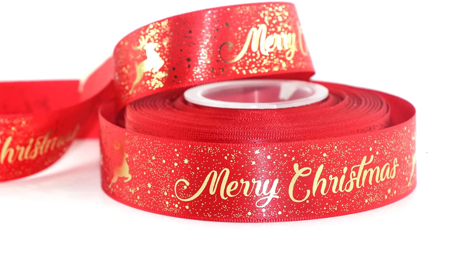 Forty Wings 9 Meter Red Christmas Printed Satin Ribbon Gift Wrapping Christmas Ribbon for Christmas Tree,Garlands, Wreath,Christmas Decoration Ribbon Gift Wrapping Christmas Craft Ribbons