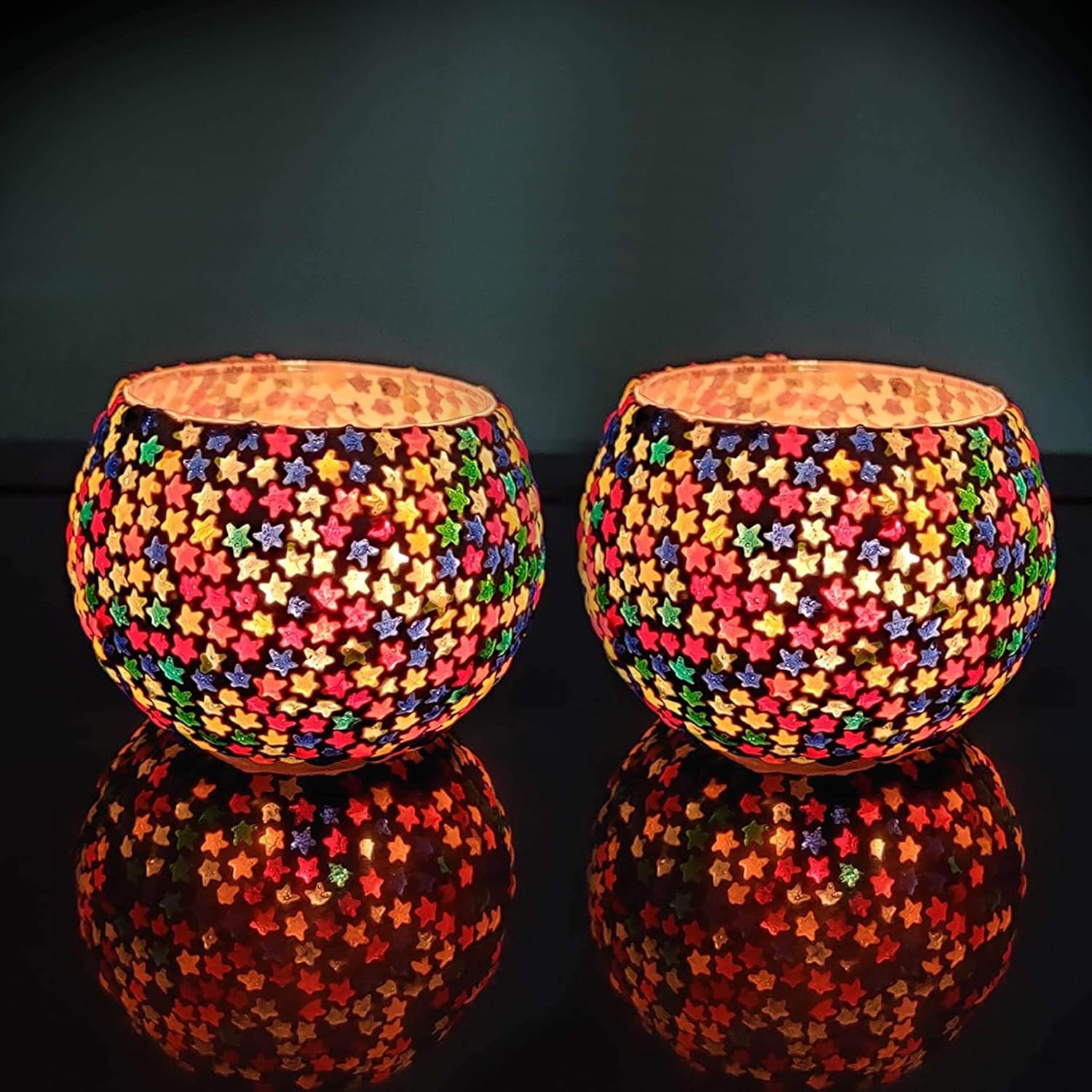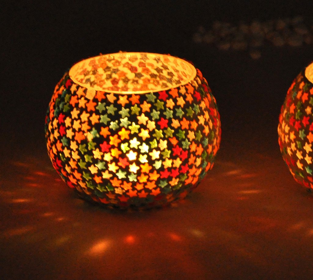 Package Contains : Pack of 2 Turkish Mosaic Glass Tealight Candle Holders Votives