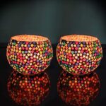 TIED RIBBONS Pack of 2 Turkish Mosaic Glass Votive Tealight Candle Holders – Diwali Decorations Items for Table Home Decor Office Gifts (Glass, Multi Color)
