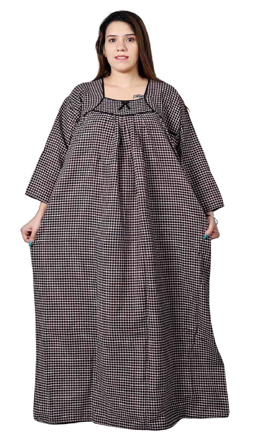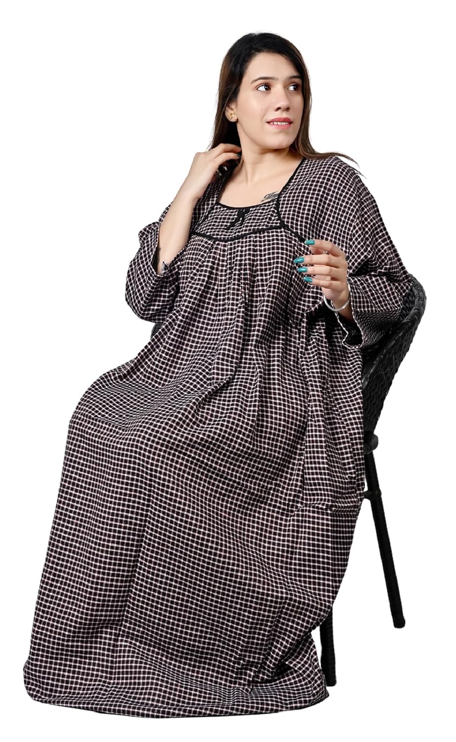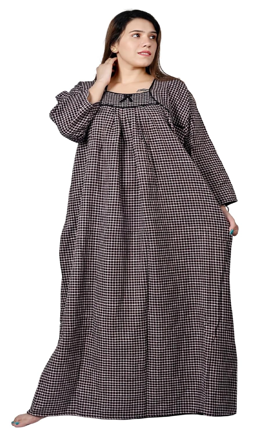 UPPER COLLECTION Plus Size Woolen Maxi Gown for Women – Soft Inner, Full Sleeves, Winter Nighty, Comfortable & Warm, Full Gher Bottom, 3XL-6XL